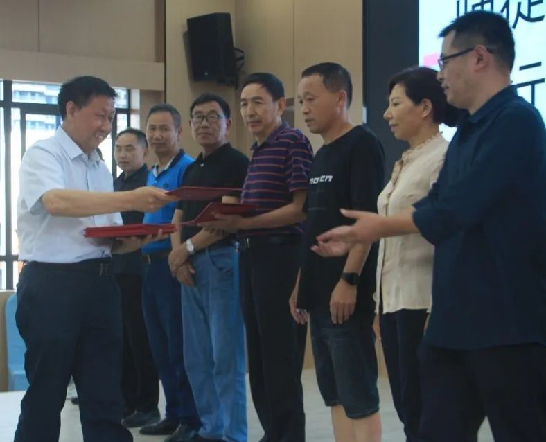 校領(lǐng)導(dǎo)宣布青藍(lán)工程結(jié)對(duì)文件,徐校長(zhǎng)、姚校長(zhǎng)為指導(dǎo)老師頒發(fā)聘書。一張聘書,不僅代表著一份榮譽(yù),更是一份沉甸甸的責(zé)任;新老師們紛紛上臺(tái),對(duì)各自的師傅深鞠一躬,拱手為禮,師傅們欣然頷首還禮,舉手投足之間,是互敬互愛的師徒默契,是未來共同進(jìn)步的無聲承諾。