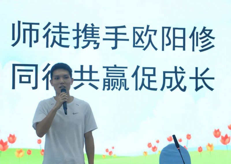 徐煒老師代表新教師向校領(lǐng)導(dǎo)和師傅們保證,她會(huì)尊重并熱愛自己的事業(yè),盡快適應(yīng)崗位需要,不斷提升教學(xué)能力,堅(jiān)定信念,絕不輕言放棄,“因?yàn)槲矣行判模瑲W陽修學(xué)校有這么多優(yōu)秀老師給我們做榜樣,以他們深厚的涵養(yǎng),豐富的學(xué)識(shí),精湛的教藝,定會(huì)給我們更加厚實(shí)的滋養(yǎng)?!?br /> 萬詩榮老師代表老教師鄭重承諾,他們將成為年輕老師們未來發(fā)展道路上的良師益友,幫助青年教師實(shí)現(xiàn)個(gè)人成長(zhǎng),他說:“我們?nèi)w師傅愿與在座的徒弟們鉆研教材,研究學(xué)情,落實(shí)‘先學(xué)后教’、‘以學(xué)生為主體’、‘以學(xué)生為中心’的理念,踐行‘至善至喜’的我校校訓(xùn)。希望你們:做一個(gè)眼中有光、心中有愛、手中有尺、心態(tài)陽光的好教師。希望你們:抱著對(duì)教育的堅(jiān)守,不抱怨、不后悔、不迷茫、不倦怠。希望你們:虛心向身邊的老師學(xué)習(xí),精心備好每一節(jié)課,用心聽好每一節(jié)課,耐心講評(píng)好每一份試卷,在教學(xué)中不斷總結(jié)反思,提高自己的專業(yè)技能,成就學(xué)生也成全自己?!?/p>