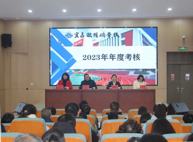 2024年1月5日,市教育局黨組副書(shū)記、市委教育工委專(zhuān)職副書(shū)記黃赤蓉一行四人蒞臨宜昌歐陽(yáng)修學(xué)校進(jìn)行年度考核工作。我校領(lǐng)導(dǎo)班子及全體教職工參與考評(píng)。