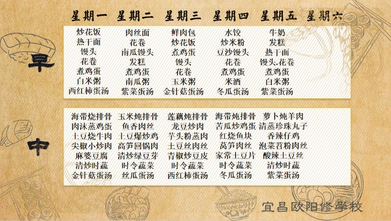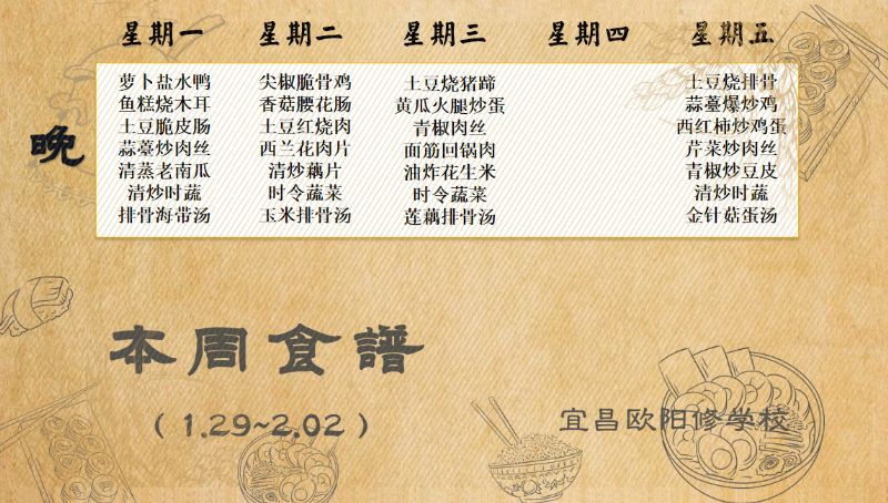 宜昌歐陽修學(xué)校每周食譜(1月29日至2月2日)