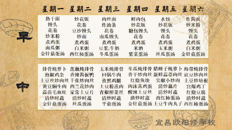 宜昌歐陽(yáng)修學(xué)校每周食譜(3月18日至3月23日)
