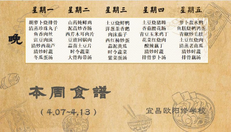 宜昌歐陽修學(xué)校每周食譜(4月7日至4月13日)