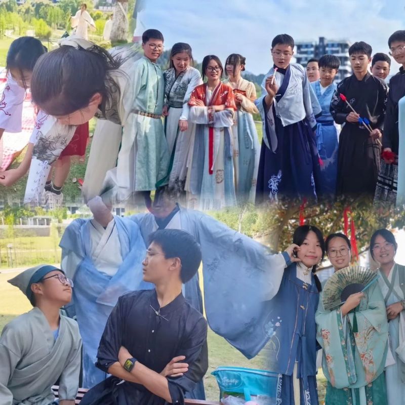 當(dāng)同學(xué)們還沉浸在詩(shī)詞的情境中時(shí),漢服介紹的環(huán)節(jié)緊隨而來(lái)。