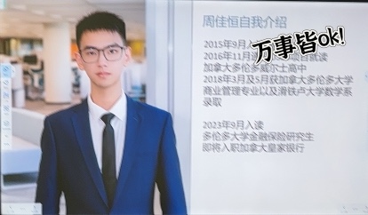 2015年-2016年完成國內(nèi)高一課程,修完雅思、數(shù)學、物理、化學、生物課程,2016年11月赴我校OSSD中加班項目的合作學校-加拿大威爾士高中完成高三年級密集課程。2018年6月以優(yōu)異的成績從威爾士高中畢業(yè),獲得加拿大安省高中OSSD畢業(yè)證。2018年3月和5月先后被多倫多大學商業(yè)管理專業(yè)以及滑鐵盧大學數(shù)學系錄取。2018年9月-2022年6月,就讀滑鐵盧大學的數(shù)學專業(yè)。2023年9月考入多倫多大學金融保險專業(yè),學習碩士研究生課程。2024年5月,入職加拿大皇家銀行。
