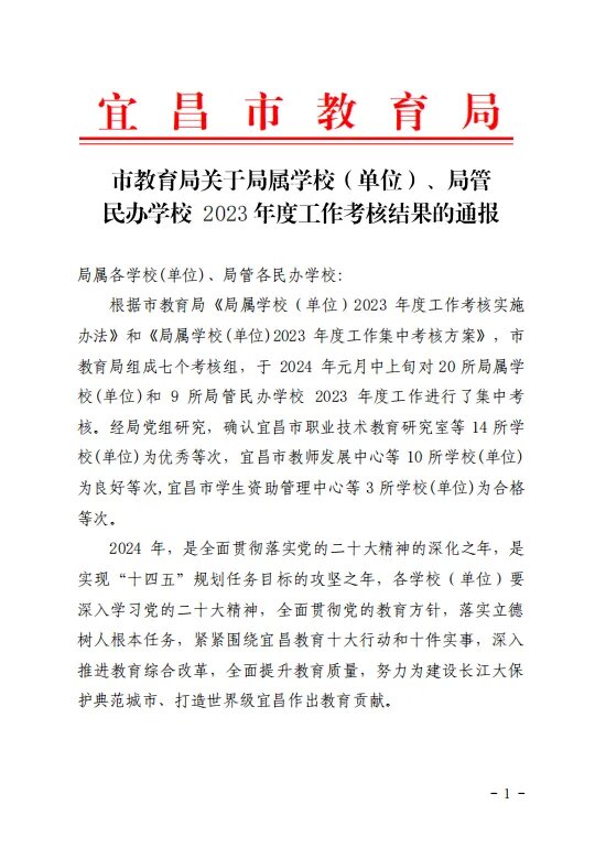 2024年,我校將繼續(xù)深入學(xué)習(xí)黨的二十大精神,全面貫徹黨的教育方針,落實(shí)立德樹人的根本任務(wù),緊緊圍繞宜昌教育十大行動(dòng)和十件實(shí)事,深入推進(jìn)教育綜合改革,全面提升教育質(zhì)量,我校將不負(fù)社會(huì)各界期望,繼續(xù)利用各類教育資源,解決好存在的問題,為學(xué)生的終身發(fā)展負(fù)責(zé),為辦人民滿意的教育持續(xù)奮進(jìn)!