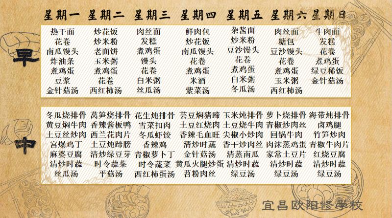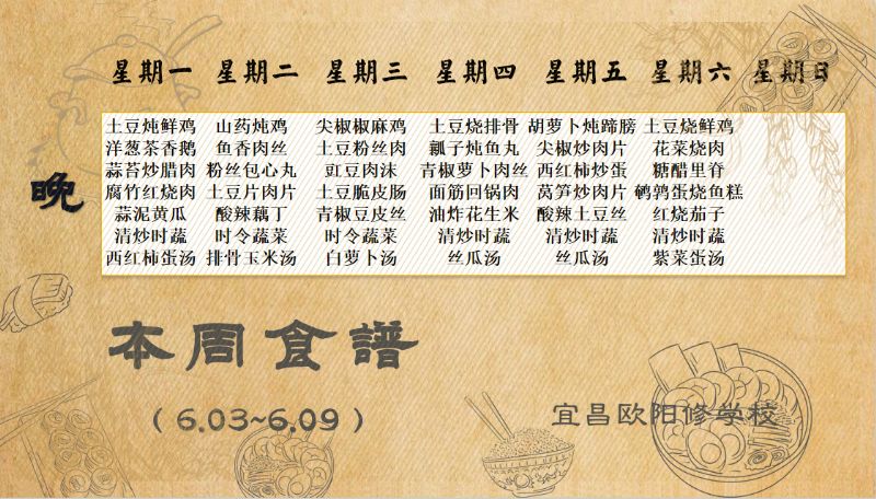 宜昌歐陽修學(xué)校每周食譜(6月3日至6月9日)