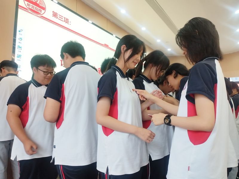第三項,老團員為新團員佩戴團徽并頒發(fā)團章。