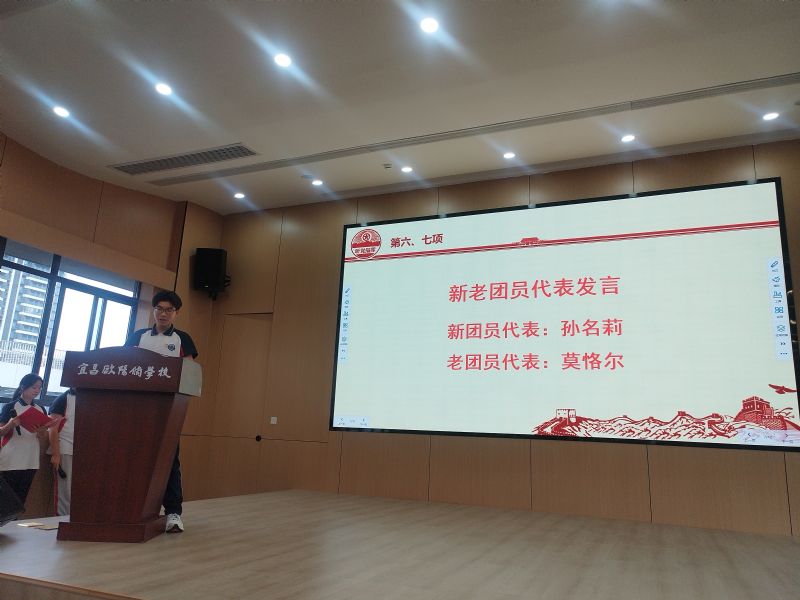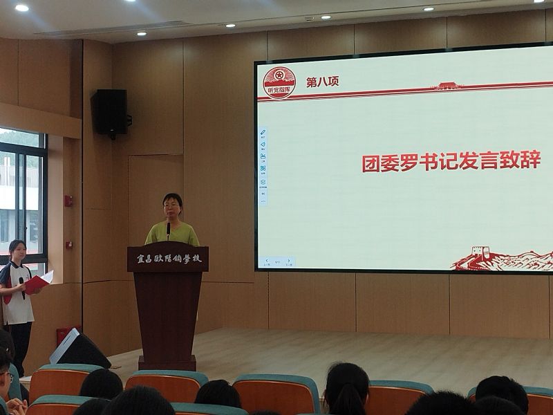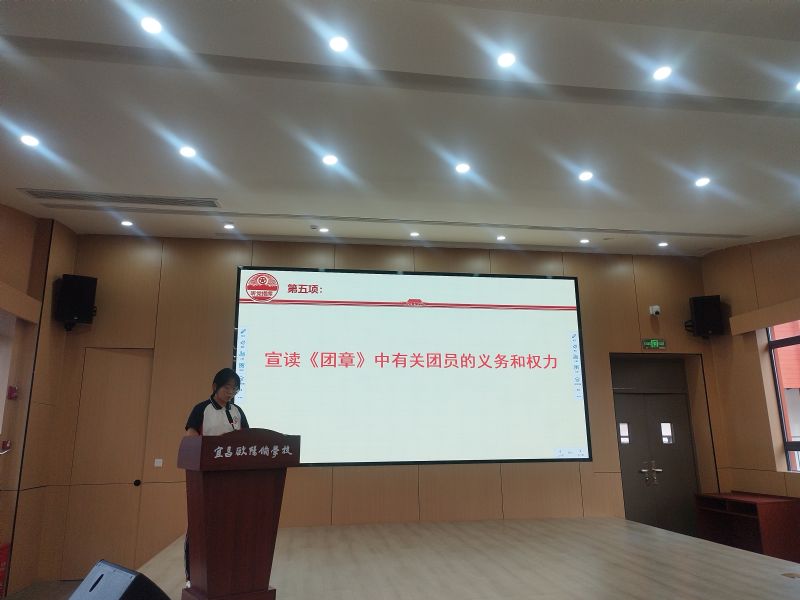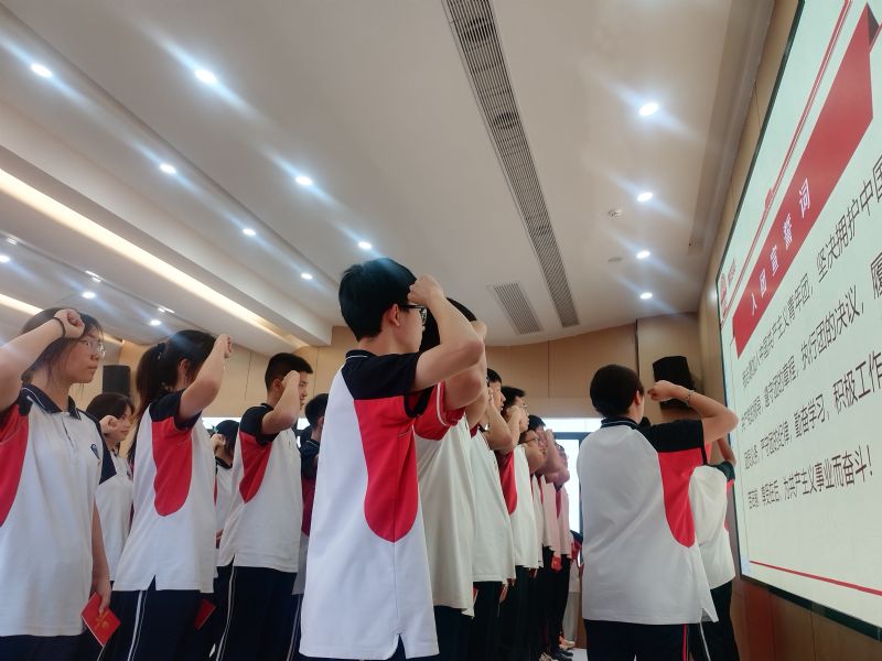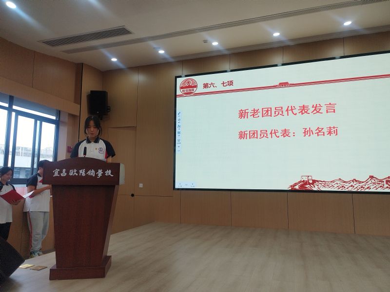 此次活動由202班張子博同學和203班李曉薇同學主持,德育副校長向麗華同志,團委書記羅琰淼同志,團委副書記馮楨同志,142名老團員及43名新團員參加了此次活動?;顒恿鞒倘缦拢?/p>