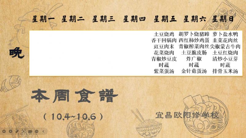 宜昌歐陽修學(xué)校每周食譜(10月4日至10月13日)