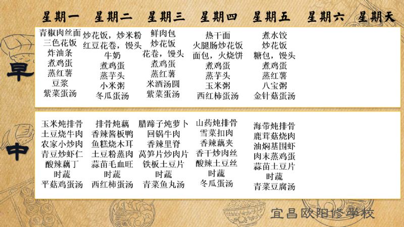宜昌歐陽修學(xué)校每周食譜(3月3日至3月9日)