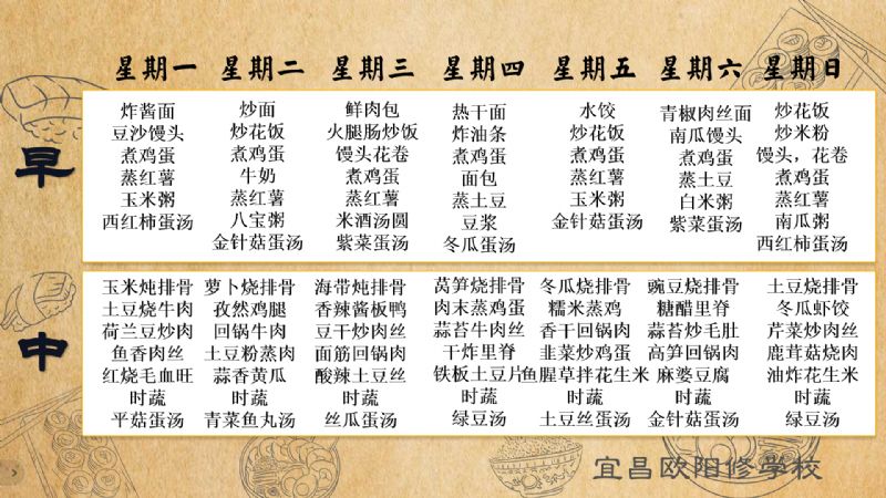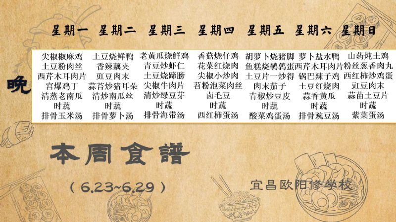 宜昌歐陽修學(xué)校每周食譜(6月23日至6月29日)