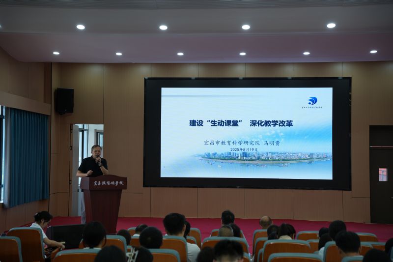 8月19日上午,馬院長(zhǎng)以“建設(shè)生動(dòng)課堂,深化教育改革”為題,從“生動(dòng)課堂”建設(shè)的必要性、“生動(dòng)課堂”的內(nèi)涵和特征、“生動(dòng)課堂”的實(shí)施路徑三個(gè)方面作引領(lǐng)報(bào)告。他強(qiáng)調(diào),“強(qiáng)教必先強(qiáng)師,強(qiáng)師必先強(qiáng)課堂”,生動(dòng)課堂建設(shè)是回應(yīng)時(shí)代對(duì)高質(zhì)量教育迫切需求的必然選擇。馬院長(zhǎng)系統(tǒng)闡釋了生動(dòng)課堂的核心內(nèi)涵——即以素養(yǎng)目標(biāo)為引領(lǐng),依托真實(shí)情境創(chuàng)設(shè)與學(xué)科實(shí)踐深化,激發(fā)學(xué)生深度思維和主動(dòng)參與,最終呈現(xiàn)生機(jī)勃勃的課堂生態(tài),并進(jìn)一步提出“四維聯(lián)動(dòng)”實(shí)施路徑:以價(jià)值觸動(dòng)為魂,深刻理解教學(xué)內(nèi)容蘊(yùn)含的育人價(jià)值;以內(nèi)容聯(lián)動(dòng)為基,注重知識(shí)的整合與綜合學(xué)習(xí);以思維觸動(dòng)為要,通過實(shí)踐活動(dòng)激發(fā)學(xué)生深度思考;以學(xué)習(xí)主動(dòng)為本,關(guān)注學(xué)生差異,落實(shí)因材施教,調(diào)動(dòng)學(xué)習(xí)積極性。這些內(nèi)容為教師如何上好生動(dòng)課堂指明了努力方向和具體路徑。馬院長(zhǎng)用一個(gè)個(gè)鮮活的案例將我們帶入一個(gè)個(gè)真實(shí)的教育場(chǎng)景中,為老師們帶來了一場(chǎng)兼具深度與溫度的盛宴。