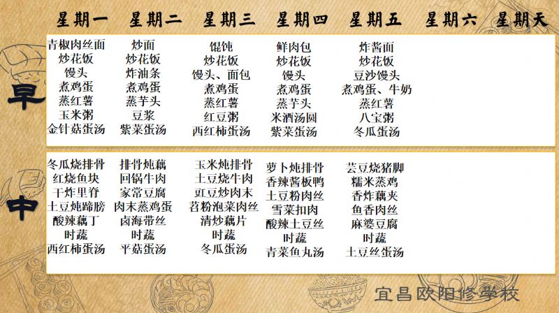 宜昌歐陽修學校每周食譜(10月13日-10月19日)